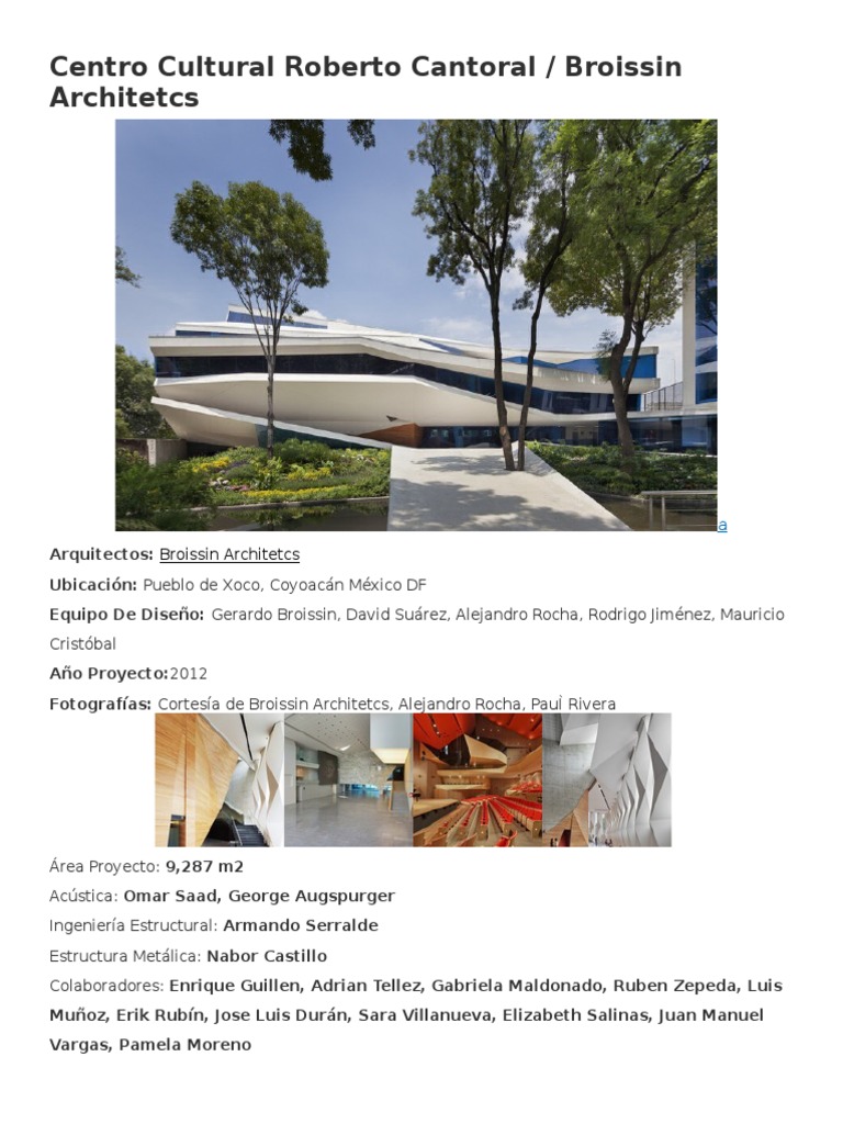 Cortesía de broissin architetcs, alejandro rocha, pauì l rivera. Coyoacán méxico df, mexico design team: De lunes a sábado de 11:00 a 15:00 y de 16:00 a 19:00 horas See 943 photos and 112 tips from 6107 visitors to centro cultural roberto cantoral. Inspired in the movement of a conductor´s baton, the building design is composed of five concrete roofs moving up and down in harmony to give shape, space and light to the project.
